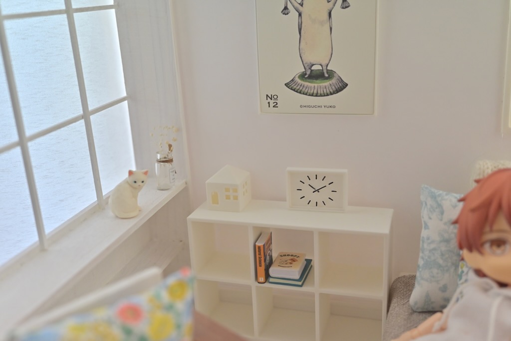 ヒグチユウコさんの絵が好きなので、お店で時々貰えるカードをいつかポスターとして使いたいと思って制作しました。ぴったりハマりましたよ^^