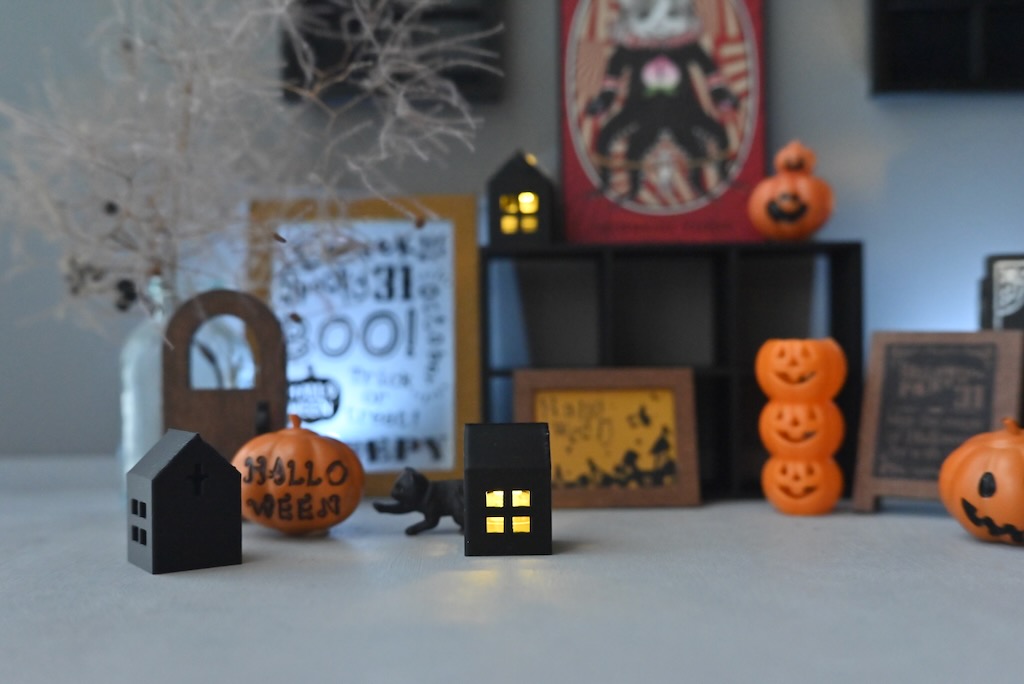 黒いお家は白いお家ほど明るくはないんですけどハロウィンの飾りになりそうなので、これはこれでいいかな。